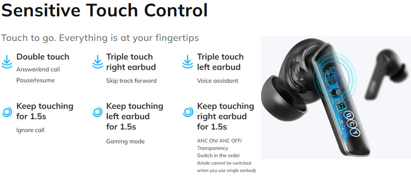 Playtime Time(earbuds): 8H (ANC off), 6H (ANC on)