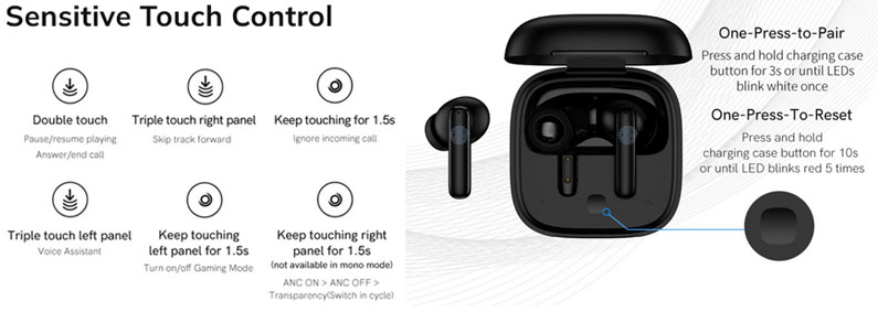 Packed with quad high-sensitive microphone array and Environmental Noise Canceling(ENC) algorithm,these earbuds can flter most environmental noises the person on the other end of call can hear you clearly.
