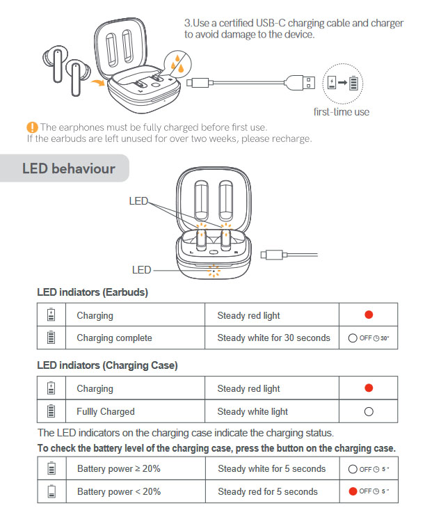 Dimensions: 21.85×32.63×24.05mm (Earbuds)