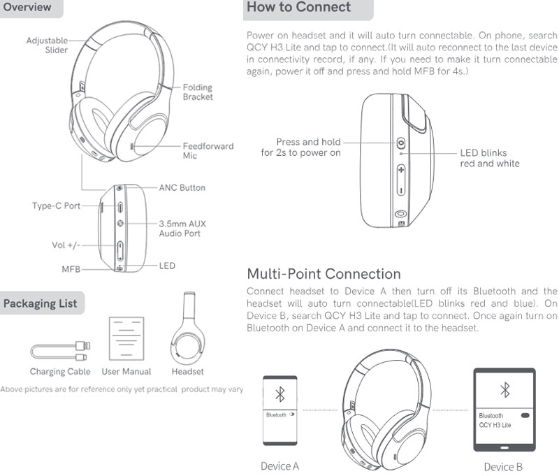 ➤60 HOURS PLAYTIME:QCY H3 LITE wireless headphones provide over 60 hours of playtime in ANC OFF mode. On the go, a 10-Minute Quick Charge gives 11 hours of playback, the 3.5mm audio jack allows you switching to wired mode anytime, so you don’t have to worry about running out of battery.