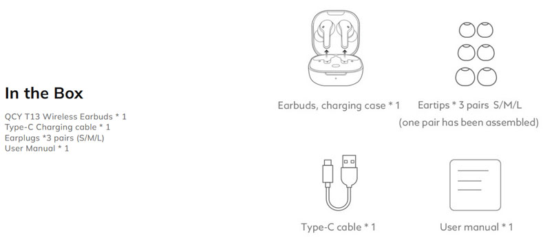 Four noise-canceling microphones for calling have been allocated in two earbuds, one microphone for voice and the other one for noise Packed with ENC technology, QCY T13 can largely block out background noises while amplify voice. Your calling can be clear even in bustling street. Put the noisy outside world on hold.