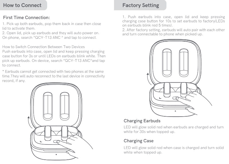 QCY T13 can offer up to 40 hours of battery life with charging case.With 4 or 5 hours of playing everyday,T13 can keep providing music for a week.